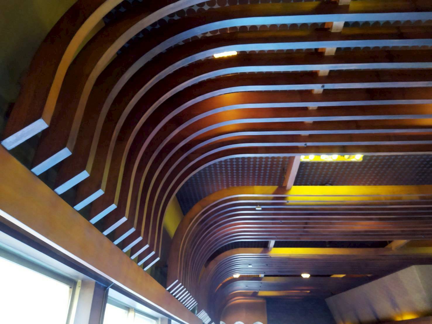 木材団地の中ということもあり、いたる所に凝ったデザインの木が使用されています。