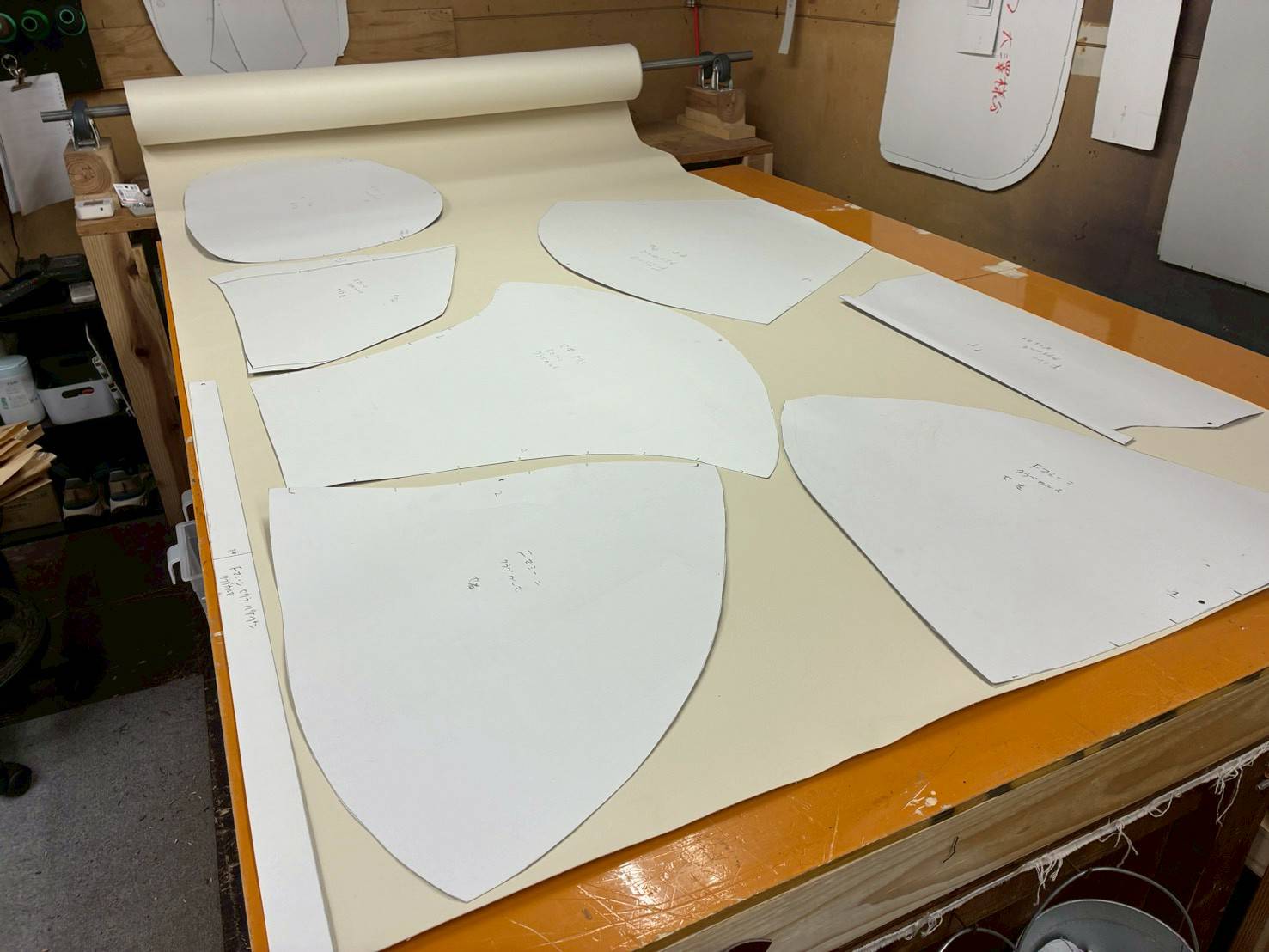 この様に型紙を作成し、正確に生地をカットしていきます。