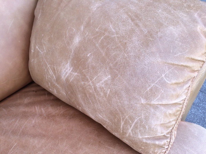 破れなどの致命的なダメージはありませんが、かなり乾燥が進み細かなスレ傷や色あせが全体的に発生しています(´;ω;`)ウゥゥ